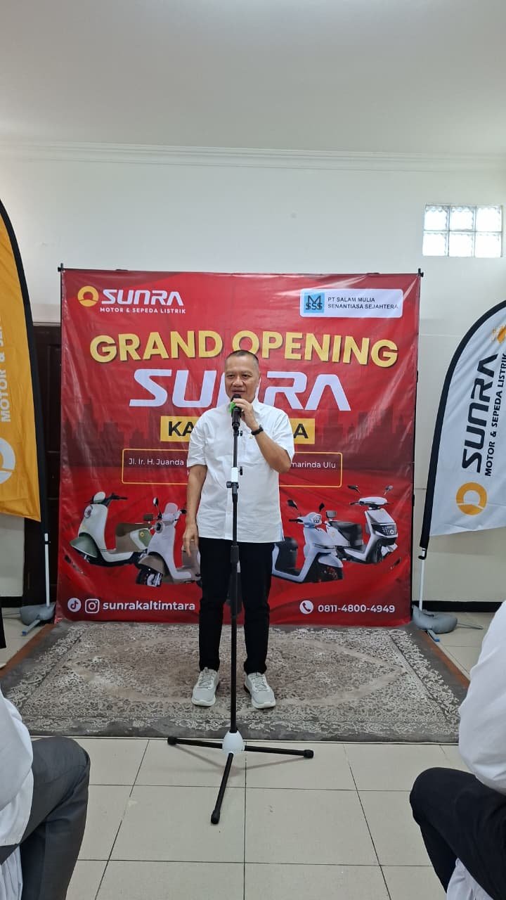 Direktur Utama PT Salam Mulia Senantiasa Sejahtera Andy Anantaputra Suardana menyampaikan rasa syukur atas terlaksananya pembukaan dealer resmi tersebut. Ia menegaskan bahwa kehadiran SUNRA Kaltimtara menjadi bagian dari komitmen nyata dalam mendukung percepatan adopsi kendaraan bermotor listrik berbasis baterai (KBLBB) yang dicanangkan pemerintah.