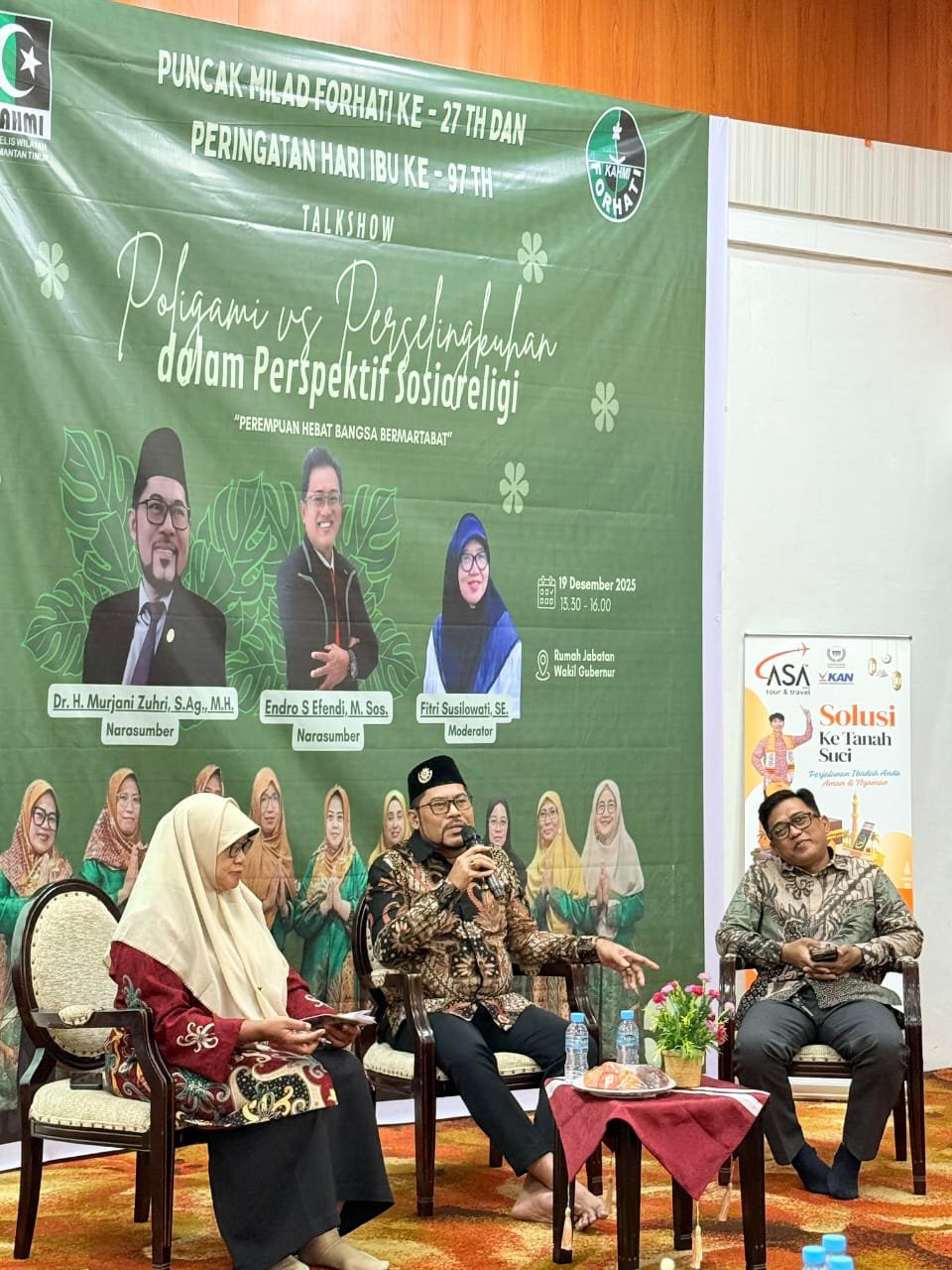 SAMARINDA- Forum HMI-Wati (ForHati) Kalimantan Timur menggelar Puncak Milad ke-27 yang dirangkai dengan Peringatan Hari Ibu ke-97 melalui sebuah talkshow sosioreligi bertema “Poligami vs Perselingkuhan dalam Perspektif Sosioreligi” dengan subtema “Perempuan Hebat, Bangsa Bermartabat”. Kegiatan ini dilaksanakan pada Jumat, 19 Desember 2025, pukul 13.30–16.00 WITA, bertempat di Rumah Jabatan Wakil Gubernur Kalimantan Timur.