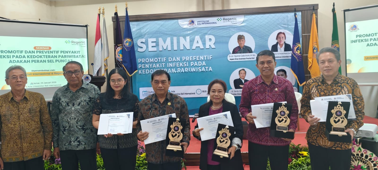Denpasar — Universitas Bali Internasional (UNBI) di bawah naungan Yayasan Anugerah Husada Bali Indonesia, bekerja sama dengan RSUD Bali Mandara dan Regenic Stem Cell – PT Kalbe Farma, menyelenggarakan seminar ilmiah bertajuk “Promotif dan Preventif Penyakit Infeksi pada Kedokteran Pariwisata: Adakah Peran Sel Punca?”.
