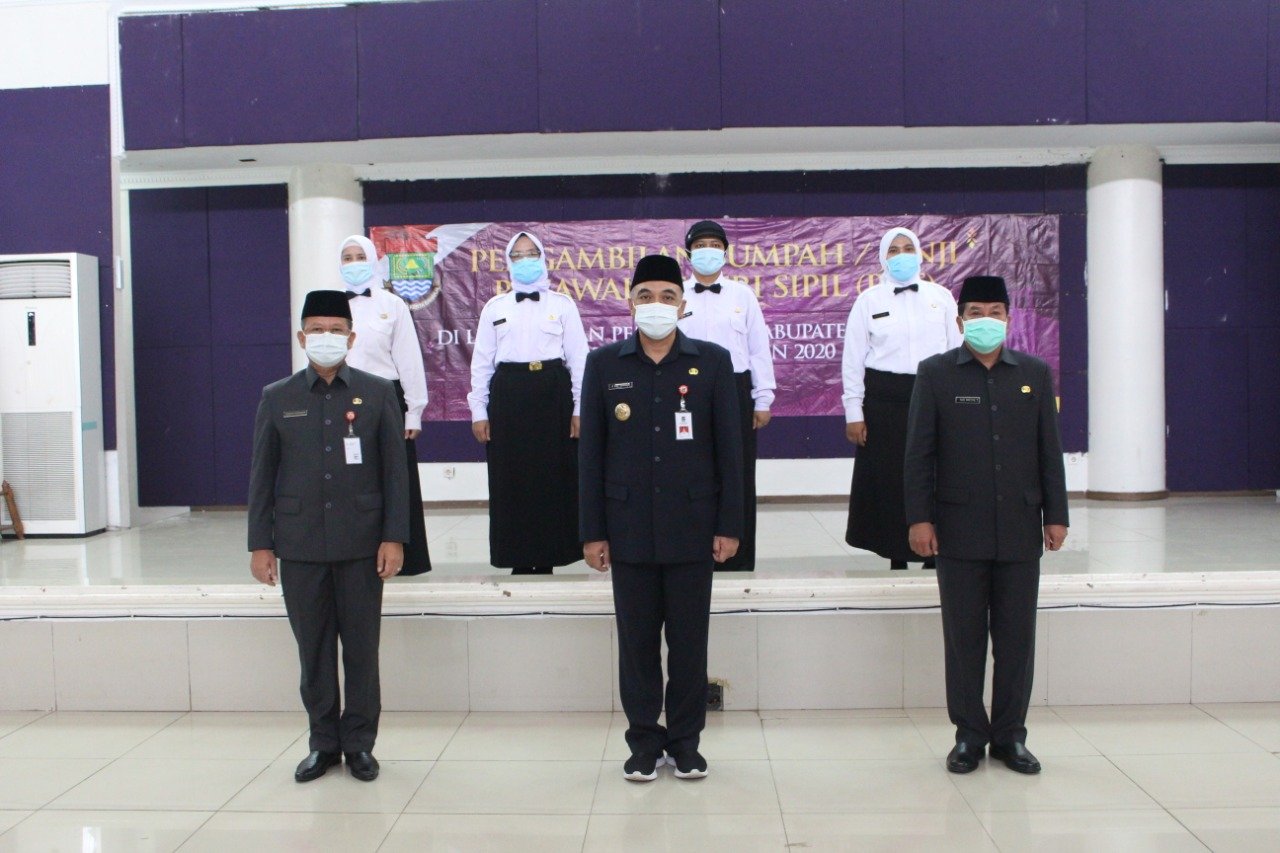 SIN – Sebanyak 35 Bidan Kementerian Kesehatan di Lingkungan Pemerintah Kabupaten Tangerang menjalani prosesi Pengambilan Sumpah/Janji Pegawai Negeri Sipil (PNS), di Gedung Serba Guna (GSG) Kabupaten Tangerang, Senin (26/10/20)