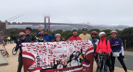 San Francisco – Dalam rangka menyambut HUT Ke-76 RI, Konsulat Jenderal Republik Indonesia di San Francisco menggelar kegiatan gowes bersama menyeberangi jembatan